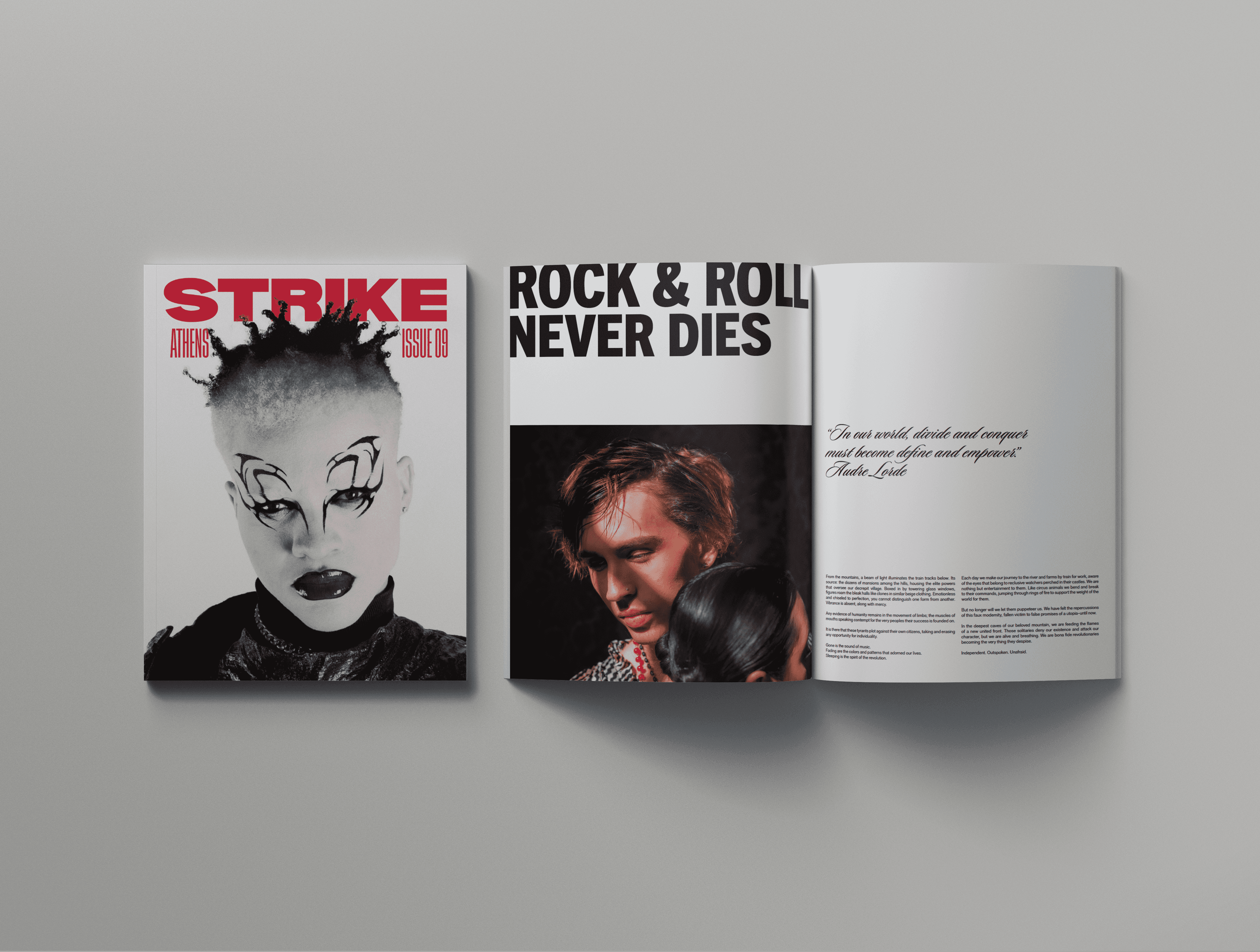 Strike Magazine is the nation’s largest student-run fashion and culture publication, dedicated to exploring the intersections of culture, fashion, and art. It aims to foster creative communities on college campuses by providing students with professional experience across all aspects of content production. I have worked on the layout for two issues, contributing both type and image focused compositions.