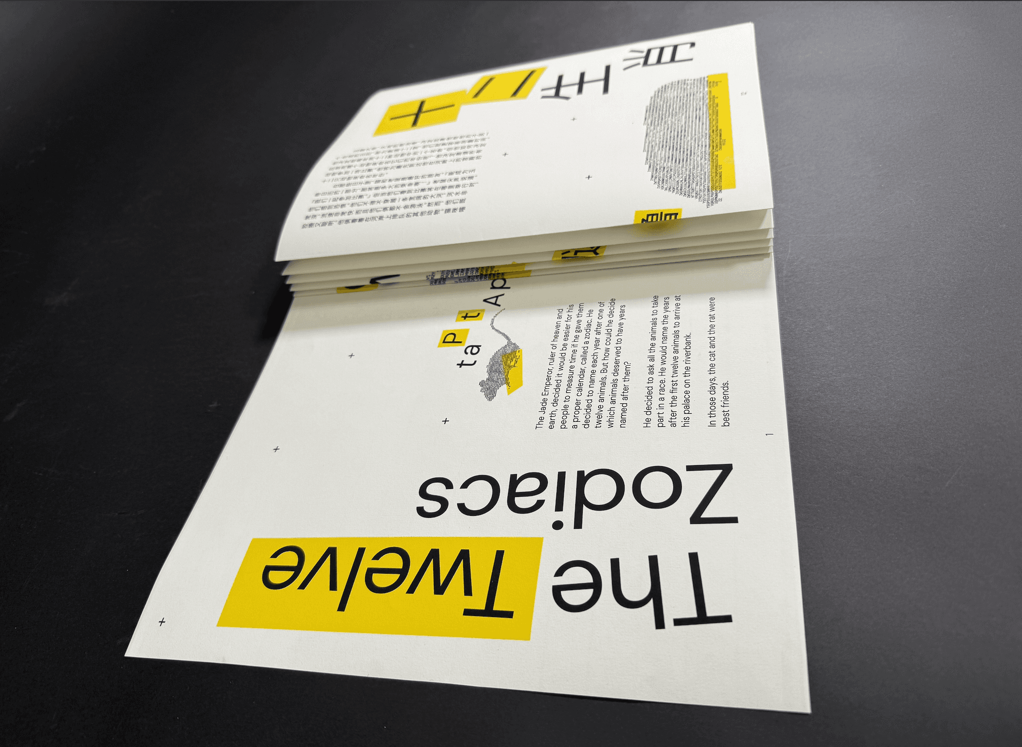 In this project, I explored the typographic contrast between English and Chinese through the layout of a short narrative. Drawing from my experience as an Asian American who attended Chinese school, the piece serves as a personal homage to my mother tongue. I used the traditional Chinese reading structure, top to bottom and right to left, to contrast with the Western left-to-right format of English, highlighting differences in cultural and visual rhythm.